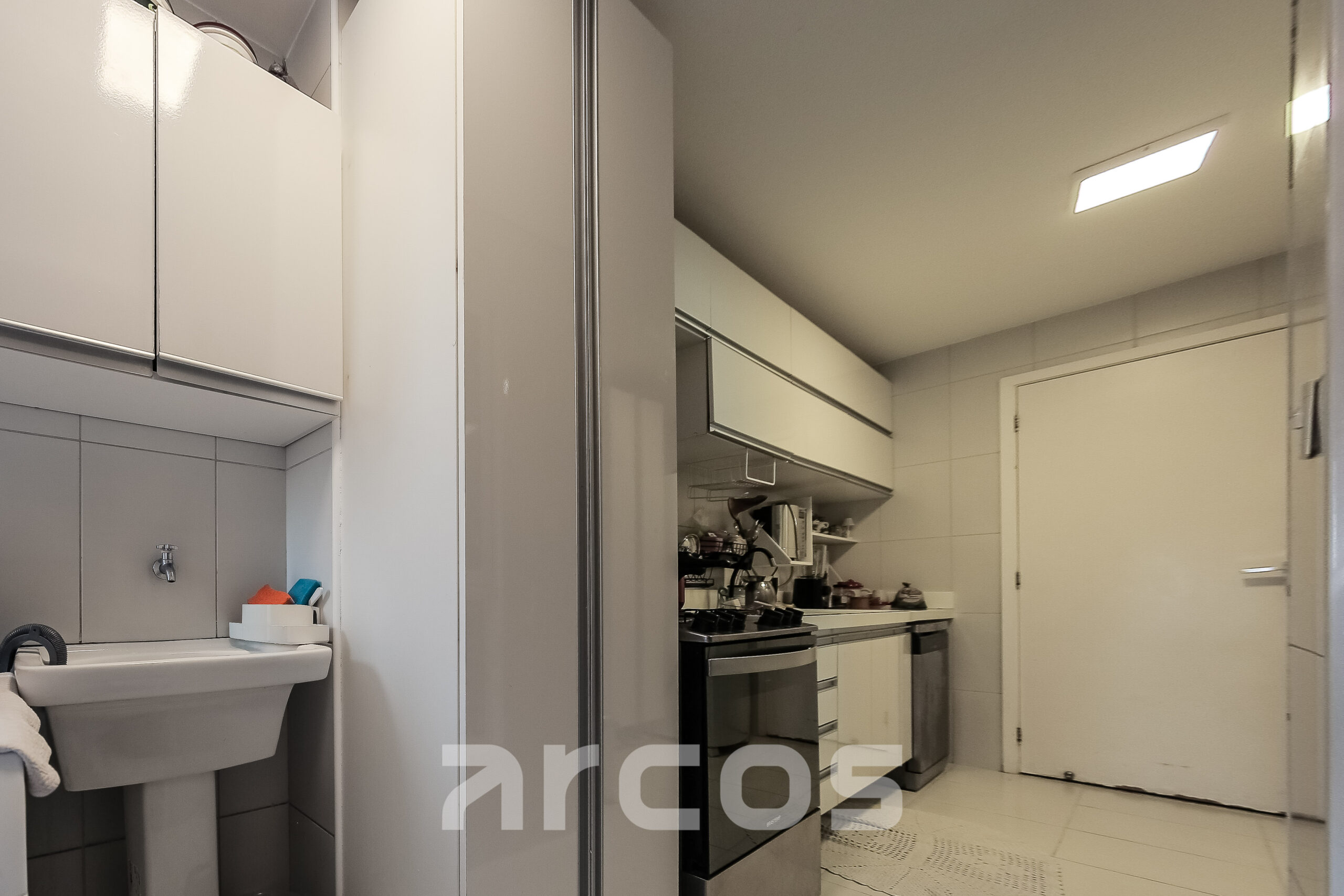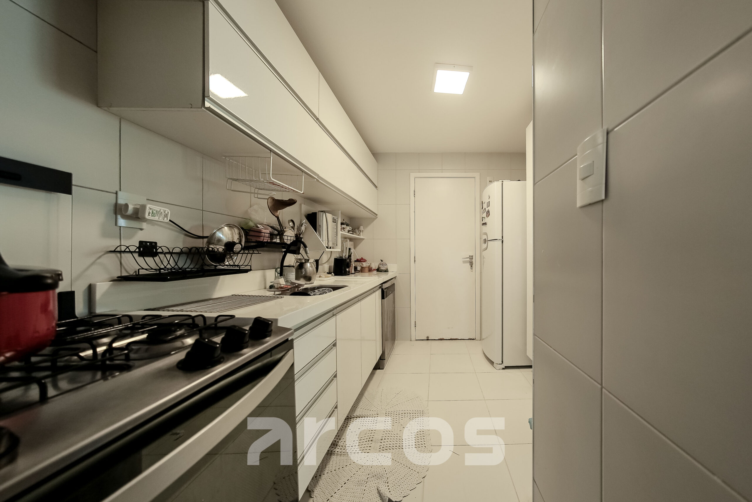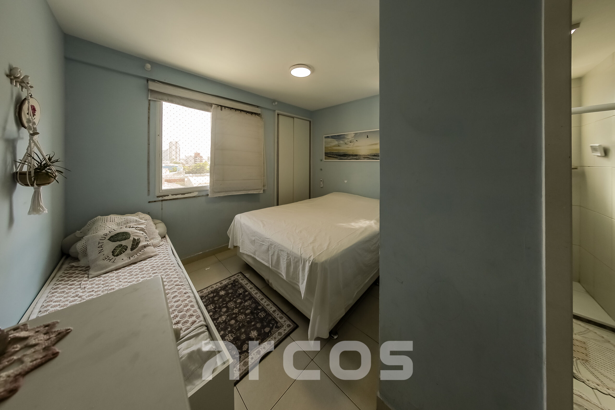 Com 104 m² bem distribuídos, o imóvel conta com 3 quartos, sendo 1 suíte, sala em L integrada à varanda ampla com vista para o mar e acesso a um dos quartos, banheiro social, cozinha funcional, área de serviço e dependência completa. Permanecem os móveis planejados da cozinha, quartos e banheiros. Possui 2 vagas de garagem e posição Sul/Oeste, que favorece ventilação e luminosidade ao longo do dia.
